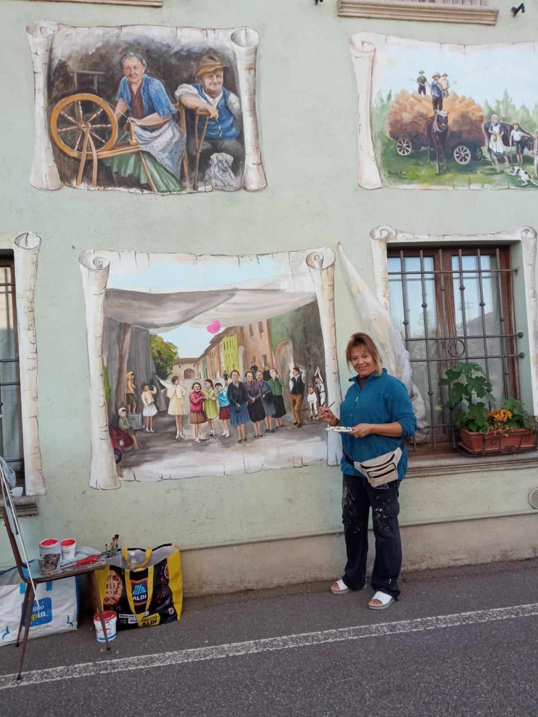" LAVORI ANTICHI " e "LA FAMIGLIA" Prati di Calcinato (Brescia) 7 Murales-"Pergamena" che coprono un'intera facciata di ca. 30 m2é