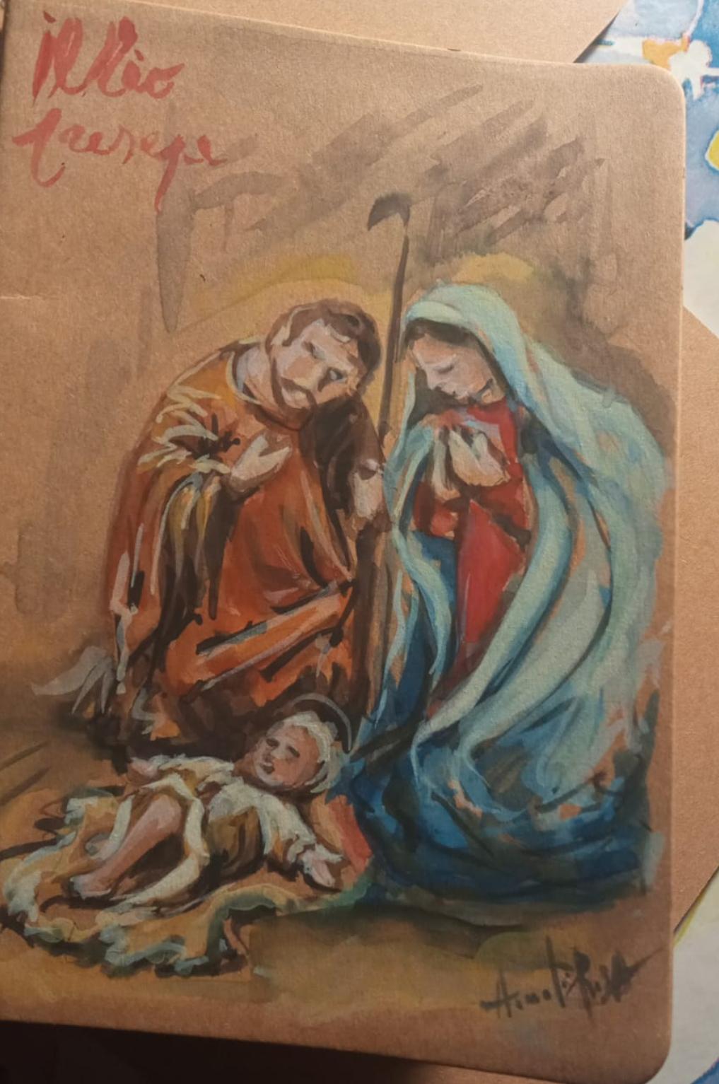" PRESEPI A PUEGNAGO DEL GARDA " Acquarelli di Rosa Amadei [ composizioni, originali, per la decorazione del Presepe delle piccole Sculture ]